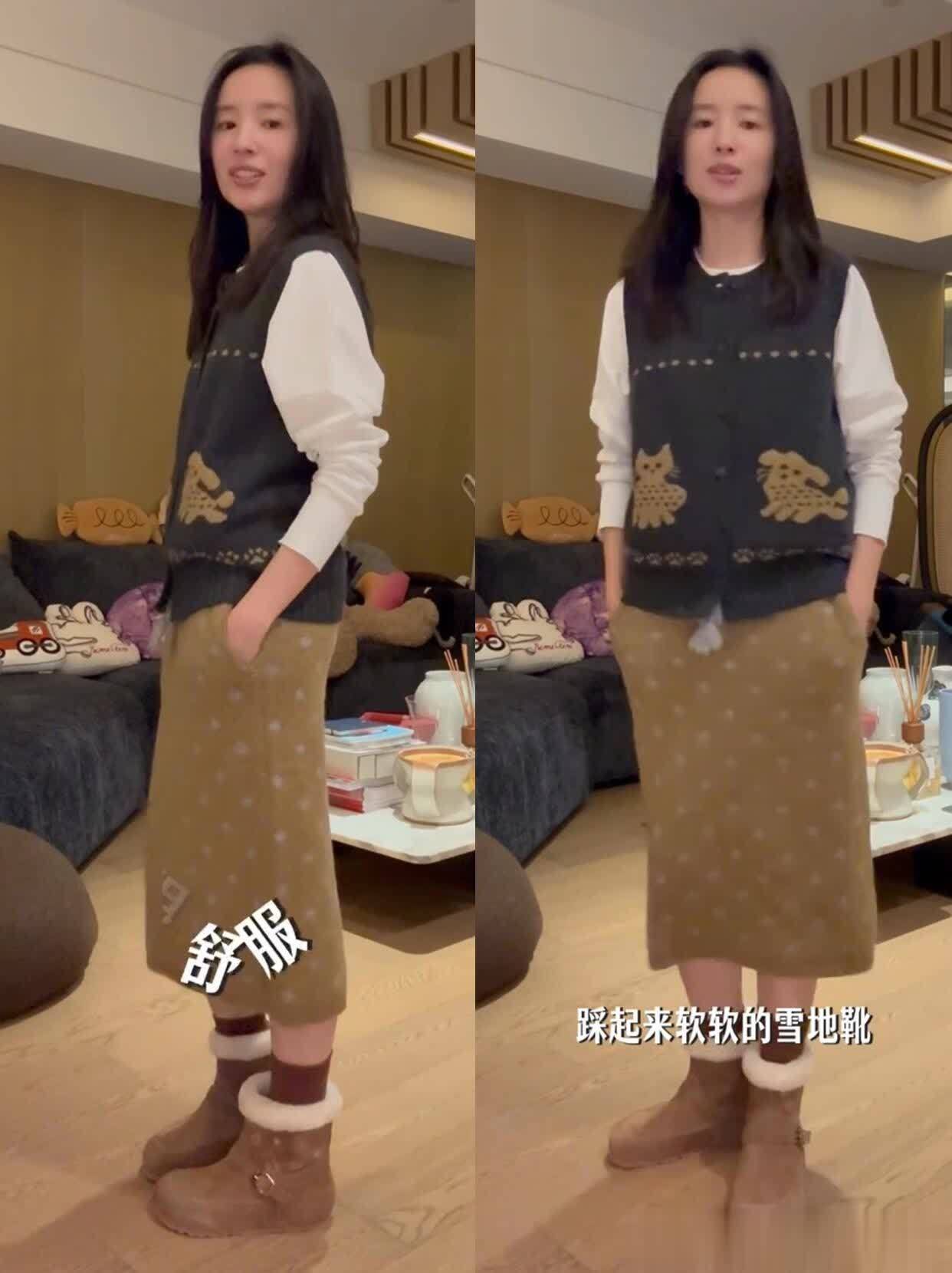 而且她选的单品都自带“慵懒感”,针织衫是松垮的oversize,牛仔裤是垂坠感强的直筒款,外套也是软乎乎的版型,穿上身完全没有束缚感,走路带风都很自在。普通人学她穿搭,不用追求“紧身显身材”,这种“藏肉又舒服”的风格,反而更能体现松弛的气质,秋冬这么穿,既保暖又像从画报里走出来的,谁看了不说一句“姐姐好会啊”~